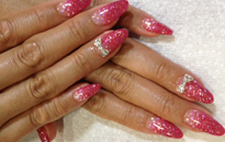 みんな大好きピンクのキラキラネイルにキュートなリボンを乗せて♪ |