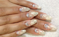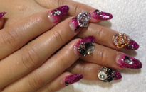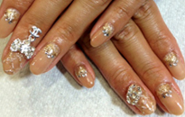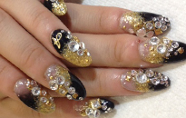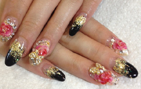 ゴールドベースにお花やパーツをふんだんに使ったゴージャスネイル☆ |