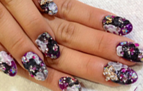 パープルベースにパーツをたくさん乗せた派手ネイルです♪ |