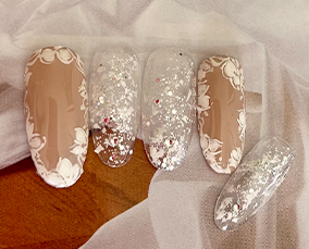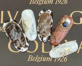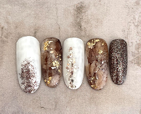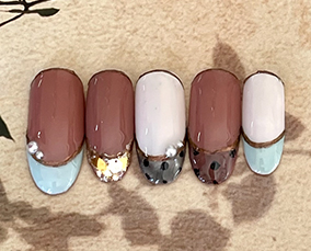 ブラウン×ホワイトの大人ネイルに遊び心を♪ |
