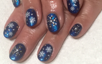 ラメ感のあるブルーのベースに雪の結晶で冬らしさ満点。 |