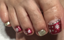 濃いめのレッドラメカラーで大人っぽくゴージャスに。 |