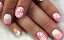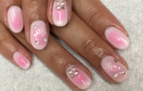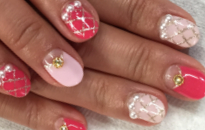 2トーンのピンクベースに大き目パールで華やかに! |