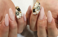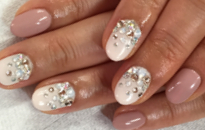 ベージュ系で手元を美しくストーンで華やかさをプラス。 |