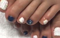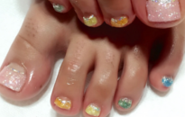 冬でも明るいカラーのカラフルフットネイル! |