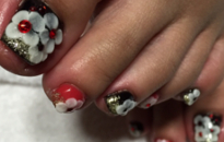 和風のフットネイル。赤×黒で大人っぽく♪ |