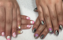 お友達同士で成人式ネイル。お話ししながら施術できます★ |