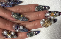 ゴージャスなロングネイル。パールを乗せてより華やかに! |