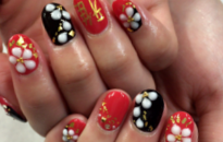 赤×黒の定番和柄ネイル。大人っぽさと純粋さをミックス! |