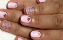 成人式ネイルです。淡いピンクでキュートに。 |