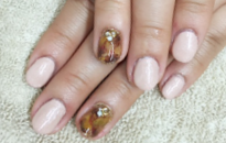 シンプルなピンクベースとポイントでべっ甲ネイルを♪ |