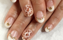 フレンチネイルにポイントでヒョウ柄をペイントしました。 |