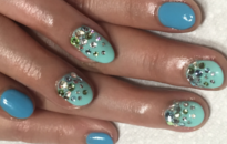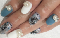 2トーンのブルーネイルにたっぷりのビジューでセレブ風! |