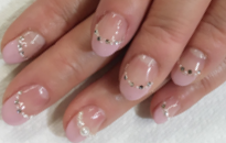 淡いピンクのハーフフレンチにストーンで華やかに♡ |