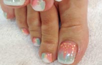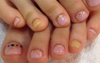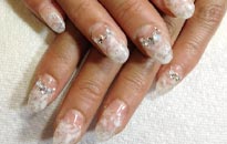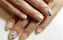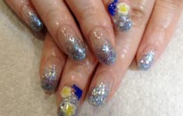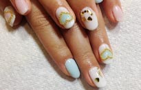 可愛らしい淡色の組み合わせにゴールドのブリオンやホログラムでアートを。 |