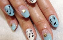 可愛らしい淡いブルーのベースに音符を描いてキュートネイルの完成です☆ |