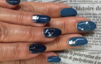 右左違うアシンメトリーネイル。右デニム色、左ネイビーたいだいに。 |