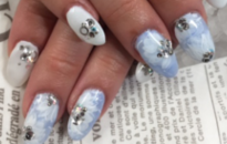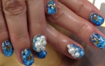 個性的なブルーネイル。パールが新鮮な感じ。 |