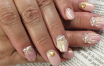夏らしいネイル!ピンクパステルに レースフラワー。 |