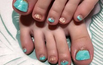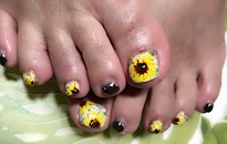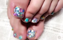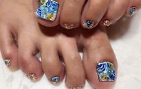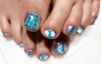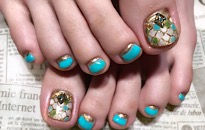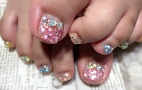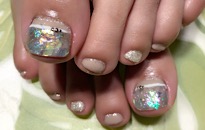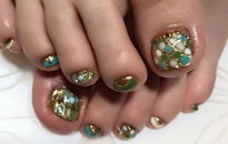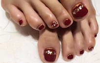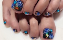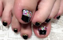 ストーンでボーダービジュー。 | 薬指は フンワリチェック。 | 薔薇でフットネイルに♡豪華 | クラッシュシェルと金箔を! |