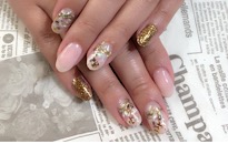 薬指だけストーンとパールアート。 |