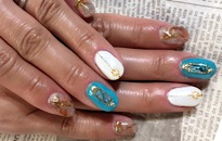 プリズムリーフホロが人気! | 3Dジェルで ゴルフボールを表現。 | 薬指は キャンディボールを追加。 | ゴールドのモロッカンネイル。 |