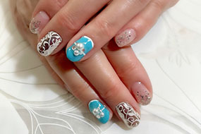 ブルーベースのゴージャスネイル!芸術です。 |