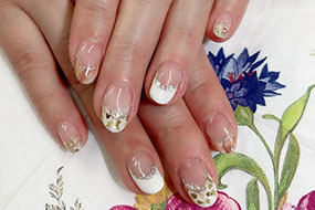 3月定額ネイルのダブルフラワーネイル。花の花芯にまた花。 |