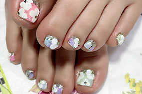 お花ドットネイル。何とも春らしい足元になりました。 |