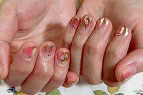 コーラルピンク✖️24Kミラーにストーン色々つけました。 |