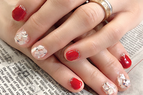 涼し気ネイル!赤が映えます♡ |