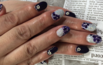 ブラックパープルにグレーラメとパープルフラワー❁ |