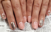 流行のミラーネイルです。ベースの色がヌーディなので上品に! |
