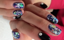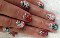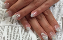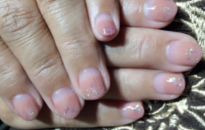 長さありますが自爪にフローターです。今回は、キラキラネイルに! |