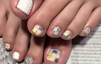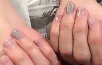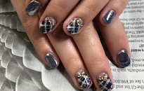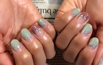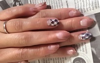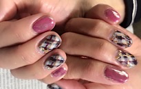 ベージュグラデ。薬指は人気のチェック柄。 |