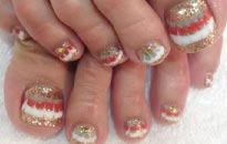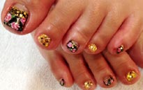 秋らしい色に親指にはストーンリボンを付けました♪ |