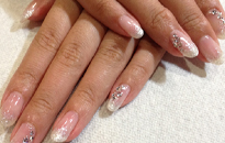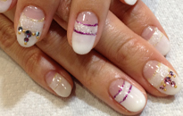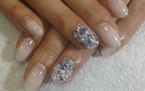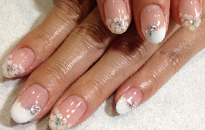 清楚なホワイトパールのグラデーションにストーンでアートしました。
