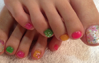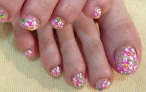 | 可愛らしいミルキーカラーで、足元から乙女気分に♪ | お花デザインのシンプルで清楚なキレイ系ネイルです★ | バービー人形のようなビビットなピンクとオレンジでPOPに☆ |