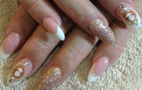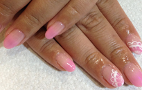お花の花びらをフレンチ形に乗せた、清楚でキレイめネイル。