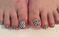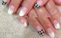 シンプルな白フレンチ×千鳥格子柄のオシャレネイル♪ | 落ち着いたレッドに上品なビジューネイル。 | ブラックとアートジェルのデザインネイルでモダンに! | ネイビーとホワイトのボーダーで夏〜秋まで使える大人ネイル。 |