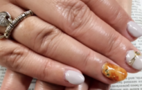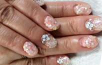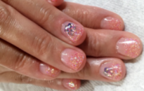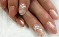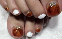 2週間フィルイン(お直し)。べっ甲柄にエンボス花をつけラメ感増量! |
