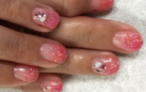 定番ラメグラデーションにポイントでストーンをキラリ! |