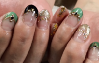 レトロなビジューフレンチ。グリーンが秋らしいです♪ |