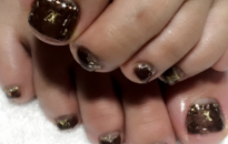 9月の定額ネイルです。秋らしいニュアンスのフットに✨ |