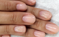 上品なヌーディーネイル。薬指にビジューで華やかに。 |