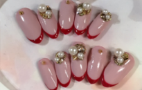 薬指にパール×クリスタル。フレンチはネイルの王道です! |
