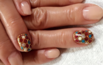 秋らしいビジューネイル色合いが 落ちつきます。 |
