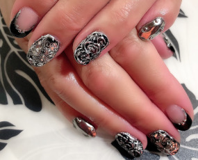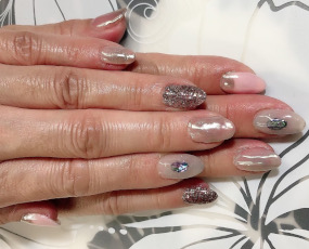 マダムらしい雰囲気になりました。 | ミラーネイルも取り入れました。 |