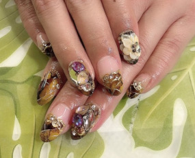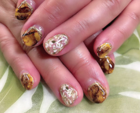 べっ甲ネイル。華やかです。 | アンティークローズにラメグラデ。 |