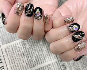 ブラックネイビーと白オーロラに金彩プラスパールアート。 |